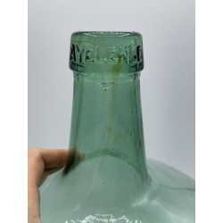 Comment rester indifférent face aux dames Jeanne ? Devenues des incontournables de la déco bohème et industrielle, nos dames jeanne ont été dénichées, enlevées de leurs paniers et nettoyées et elles ont plein d’histoires à raconter ! Cette belle dame jeanne en verre couleur vert d’eau très tendance est estampillée Ayelense et elle est d’une capacité de 10L. Un premier nettoyage a été fait mais il faudra la nettoyer de nouveau si vous voulez lui enlever ses taches de liqueur. Originale, elle a une jolie forme de bouteille. Vintage, elle présente quelques traces d’usure (cf photos) jolies marques du temps passé et son cul est creux qui permet de la porter et de verser son contenu plus facilement. A adopter de toute urgence !!