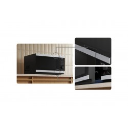 Pour une cuisine moderne et avant-gardiste, avec un micro-ondes au look épuré et élégant. Grâce à son design plat, la porte du micro-ondes a un aspect discret et élégant, avec des détails en acier inoxydable noir et équipée de poignées encastrées en haut et en bas. Cette solution n'a pas de saillies et vous permet d'ouvrir confortablement la porte avec les deux poignées.