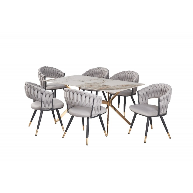 Lot de 6 Chaises pivotantes en velours avec accoudoirs avec table céramique - Gris