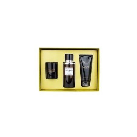 Notes de tete: Poivre Rose, LabdanumNotes de coeur: Rose, PatchouliNotes de fond : Oud, Santal, AmbreCe coffret contient : Une eau de parfum Oud précieux 100ml, gel douche 100ml, une bougie